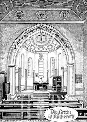 Am 27.08.1947 schließlich entsendet Herr Dr. Bornheim seinen Mitarbeiter, Herrn Merian, nach Rückeroth, wo der mit Auflagen und Änderungen sowohl den Altar als auch die Innenrenovierung genehmigt. Es folgte sodann unverzüglich die Bauausführung.
