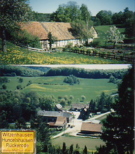 (Der 300 m ü. d. M. im Flachsbachtal (Seitental der Werra) südlich von Witzenhausen im Werra-Meißner-Kreis gelegene Ort Rückerode mit Resten einer Burg des 1613 ausgestorbenen Geschlechts derer von Berge bei meinem Besuch im Frühjahr 1999)